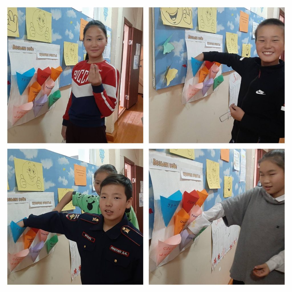 В рамках МПБ и Недели психологии проведены акции «Выбери себе кусочек счастья», «Забор пожеланий». Социальными педагогами проводится регулярный патронаж. В ходе данного патронажа жилищно-бытовые условия семей соответствуют содержанию и воспитанию детей. Розданы буклеты о трудностях переходного возраста. В целях реализации плана Недели психологии в МБОУ Кызыл-Сылдысской СОШ проведен тренинг «Я такой» в 9 классе.