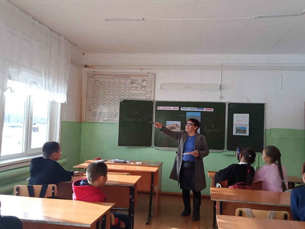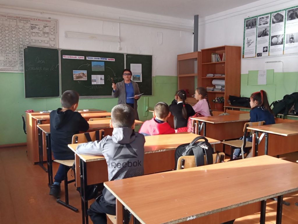 Без рубрики Музейный урок в Моренской школе 19.11.2022 / Руководителем музея МБОУ СОШ с. Морен Допчут С.Б. проведен музейный урок для учащихся 5 класса «Торээн суурум онзагай черлери».