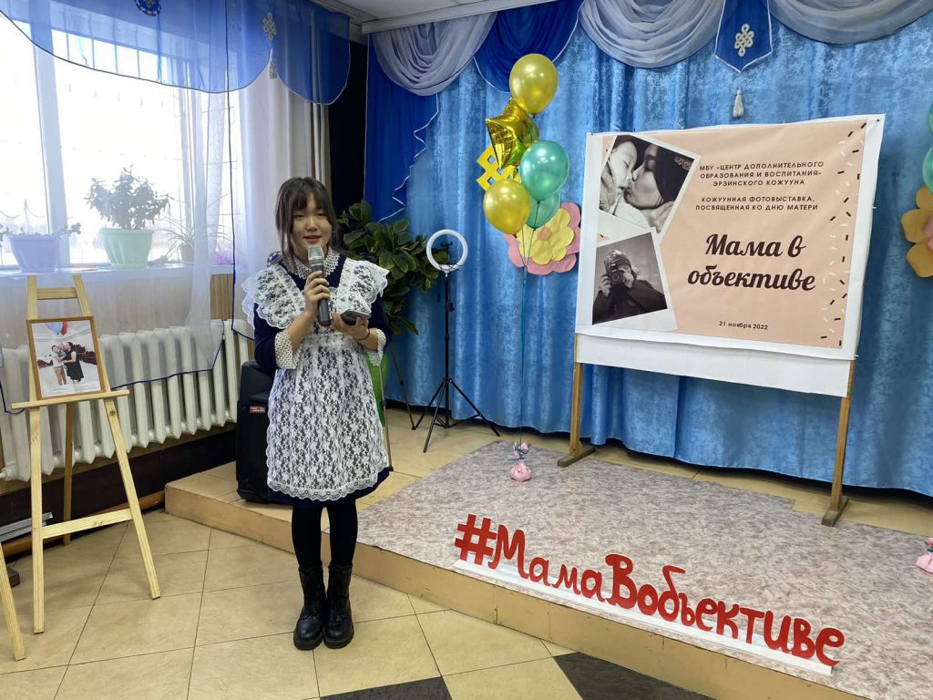 В День матери в Эрзинском кожууне проведена фотовыставка «Мама в объективе», организованная педагогами дополнительного образования и методистами Центра дополнительного образования и воспитания в Эрзинском кожууне 21 ноября 2022г. На выставке приняли участие более 70 работ- фотографий детей и их матерей. Работы были рассмотрены в номинациях «Мамины глаза», «Семейное счастье», «Мамина помощница», «Мама и я — лучшие друзья» и «Мама в объективе».